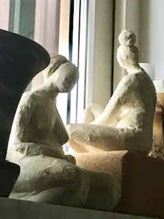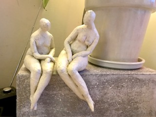 Nämen säger du det? Skulpturer i tidningspapper, ståltråd och maskeringstejp Två figurer sitter sida vid sida, fångade i ett ögonblick av samtal. Deras kroppar är enkla, nästan provisoriska, men just i sin skörhet bär de en stark närvaro. Titeln – "Nämen säger du det?" – blir som deras röst, ett vardagligt uttryck som öppnar för både förvåning och gemenskap. Materialen är ödmjuka: papper, tråd och tejp. Ändå blir resultatet en stilla närhet, där gester och skuggor talar mer än ord.