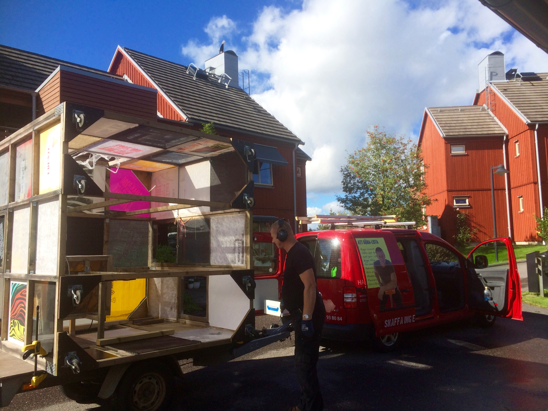 Här hjälper Lars mig att frakta min ArtCube till Norsesund