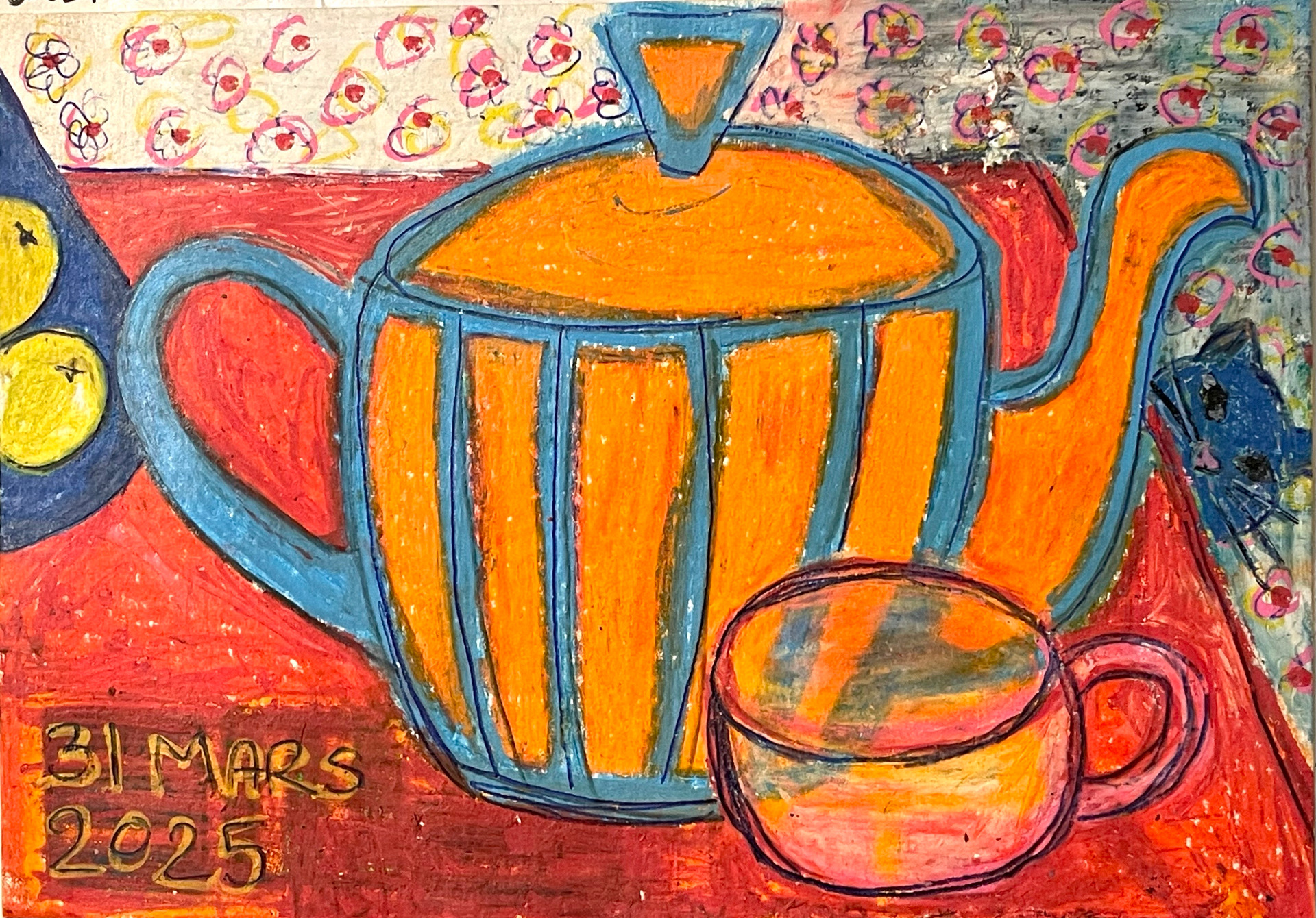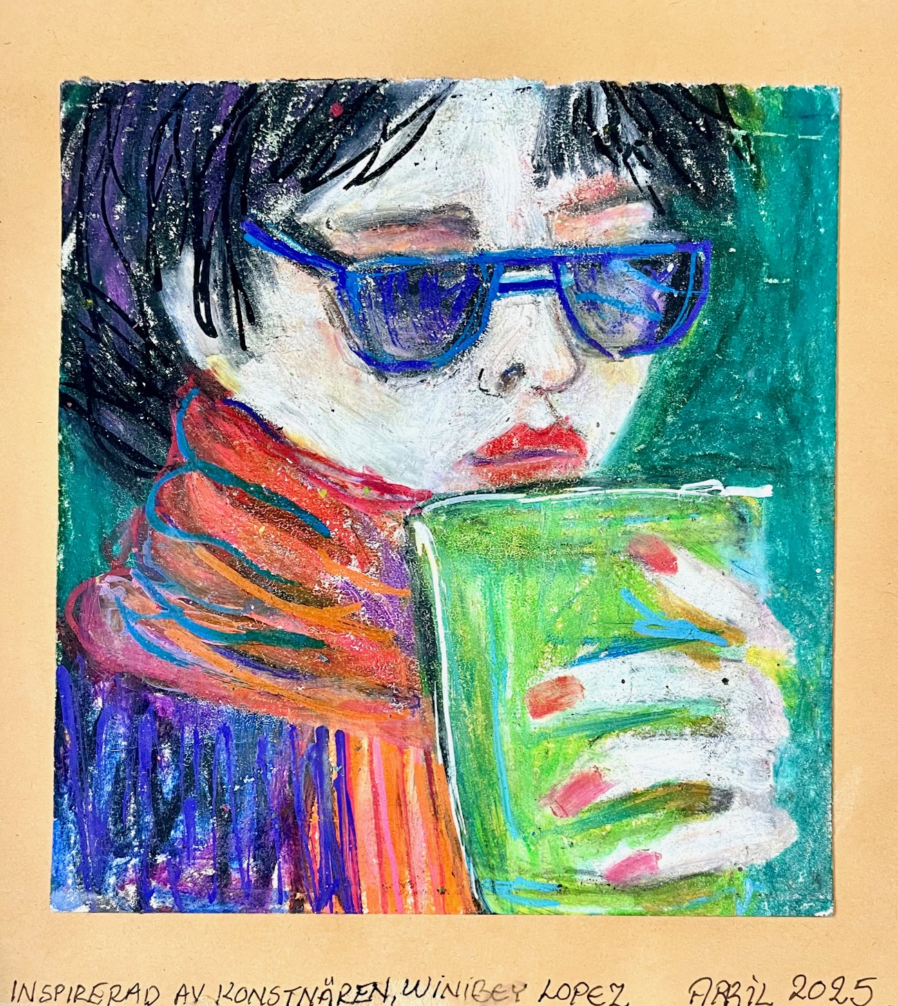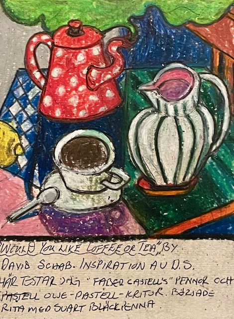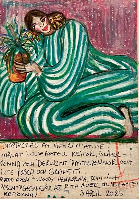 Inspirerad av David Schab. Testar mina nya oljepastellkritor, Faber Castell pennor och bläckpenna